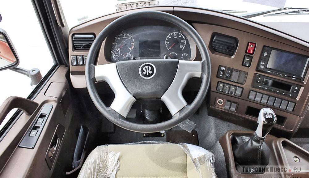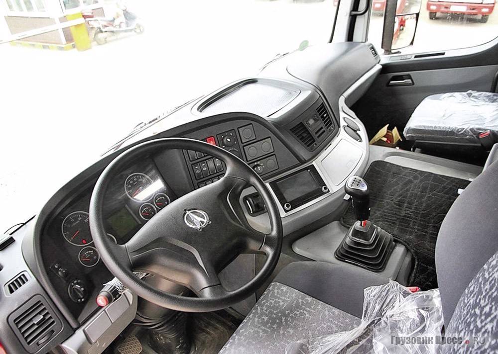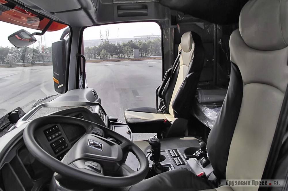 Кабина самосвалов этой марки может похвастаться завидной комфортабельностью. Присутствуют анатомические сидения, очень информативная панель приборов, с которой ни один важный показатель работы техники не останется без должного внимания. Имеется спальное место. Руль имеет ставшие уже стандартными регулировки по высоте и по наклону.