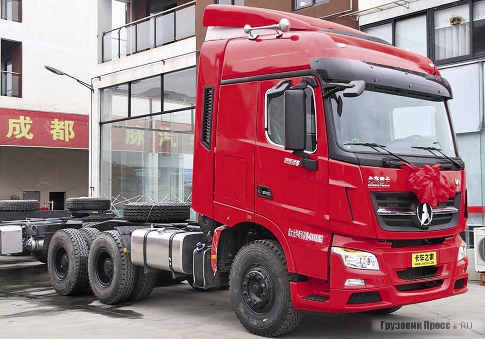 Высокопроизводительный китайский тягач, который недавно стали продавать в странах Европы и РФ. Машина показывает впечатляющие результаты: грузоподъемность – до 40 тонн, мощность движка – до 420 лошадиных сил. Кабина выполнена из прочного металла, а внутри кабины есть спальное место.