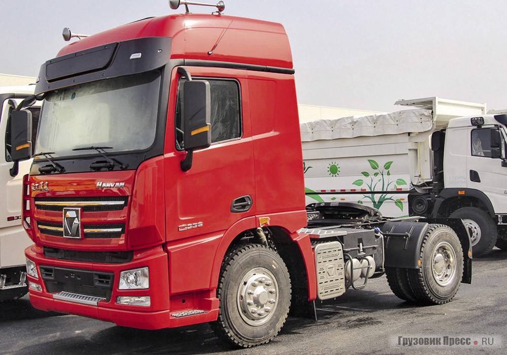 Качественный китайский тягач, который по производительности ничем не уступает иностранным аналогам (хотя на экспорт стал поставляться только недавно). Грузоподъемность – 20 тонн, а платформа подойдет для перевозки как стандартных, так и крупногабаритных грузов. Мощность движка – 336 лошадиных сил.