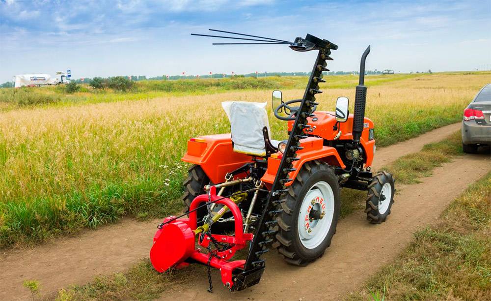 К этой модели можно подсоединять практически всё навесное оборудование других производителей. В частности: плуг, почвофрезу, роторную косилку, грейдерную лопату, подметальную щетку, сеялку, прицеп, грабли, сенокосилку, картофелекопалку, насос, экскаваторный навес и другие устройства.