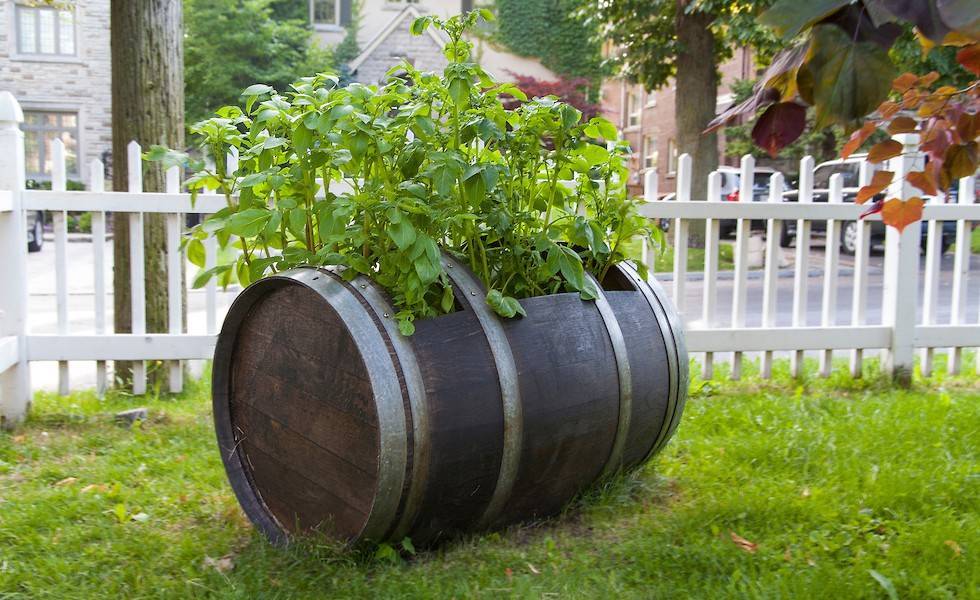 Главное требование к таре – отсутствие у нее дна. Такая мера нужна для свободного доступа к почве дождевых червей. В емкости также нужно проделать отверстия диаметром в 1 см через каждые 10-15 см. Именно они смогут обеспечить отток излишней влаги, позволят корням избежать кислородного голодания. Кроме этого, еще нужно поместить на дно бочки резиновый шланг, предварительно свернутый по спирали, где расстояние между витками составляет 8 см. В нем проделываются отверстия с интервалом в 15 см, внутренний его конец плотно затыкается, а внешний – выводится наружу, через него при помощи насоса грунт будет насыщаться воздухом. Количество процедур в неделю – 3 раза.