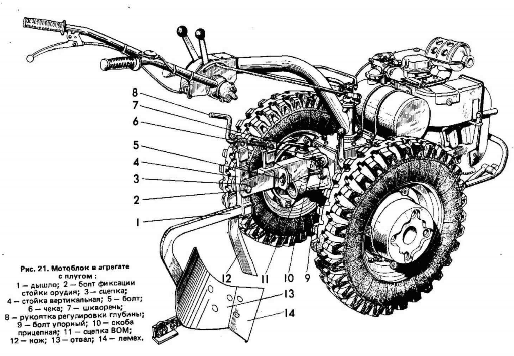 Подключение не требует особых навыков, так как рассчитано на простого потребителя. Единственное, с чем может столкнуться владелец мотоблока, это со сложностью подсоединения в одиночку, так как некоторые модели довольно тяжелые.