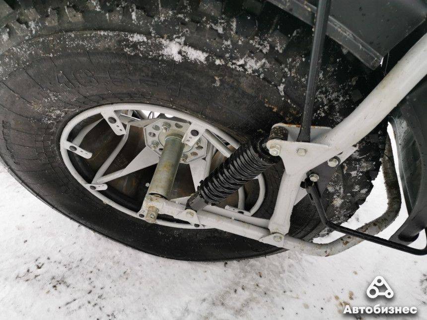 Но как же быть с перегонами на большие расстояния? Эксплуатация на дорогах общего пользования не предусмотрена, а регистрации в ГАИ вездеход не подлежит — об этом отдельным письмом сообщили импортеру. Охотнику-рыбаку-путешественнику нужно учитывать, что мотовездеход придется или оставлять в месте эксплуатации, или перевозить в прицепе шириной не менее двух метров, так как ширина задней оси — 180 см, не говоря уже про высоту.