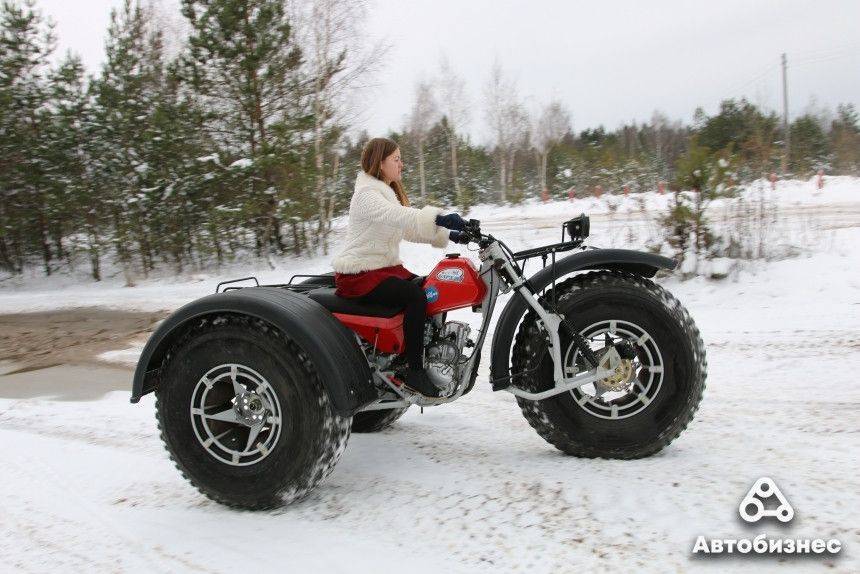 Чтобы получить трехколесный мотовездеход «Бархан», нам понадобится корпус от мотоцикла, 200-кубовый мотор Lifan 163ML-2, три огромных колеса на шинах низкого давления и смекалка, чтобы соединить все это в один аппарат.