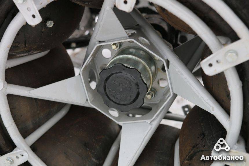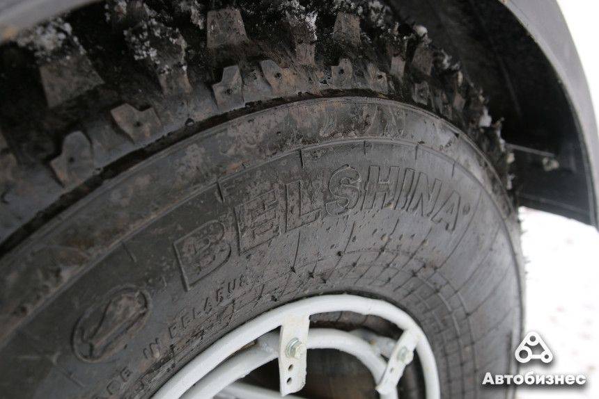 Шина высокой проходимости — белорусского производства, одна штука стоит 512 рублей. Внутри — камера низкого давления 0,01-0,03 кПа.