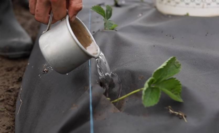 При отсутствии капельной системы просто кидают шланг на мульчу, дождевание применять нежелательно