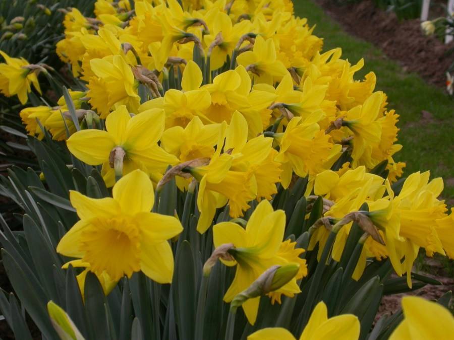 Сорт не выше 30 см; цветки мелкие, золотисто-желтые. Эти нарциссы хорошо смотрятся среди газона.