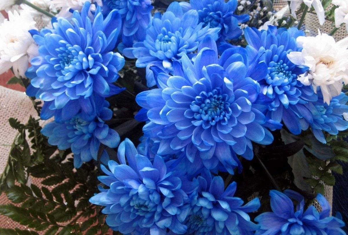К синим хризантемам, как у садоводов, так и у ученых, есть большой интерес. С помощью селекции удалось вывести хризантему кремового, лилового, белого, зеленого цветов. Синие удается получить на данный момент только, благодаря правильным посадке и уходу.