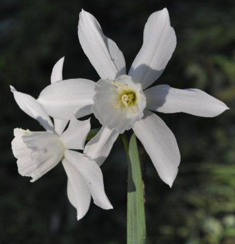 На цветоносе от двух бутонов, они свисают. Доли околоцветника запрокинуты назад. Чаще всего распространены белые нарциссы. Но жёлтые и золотые также присутствуют. Цветение раннее. Можно сажать среди камней.