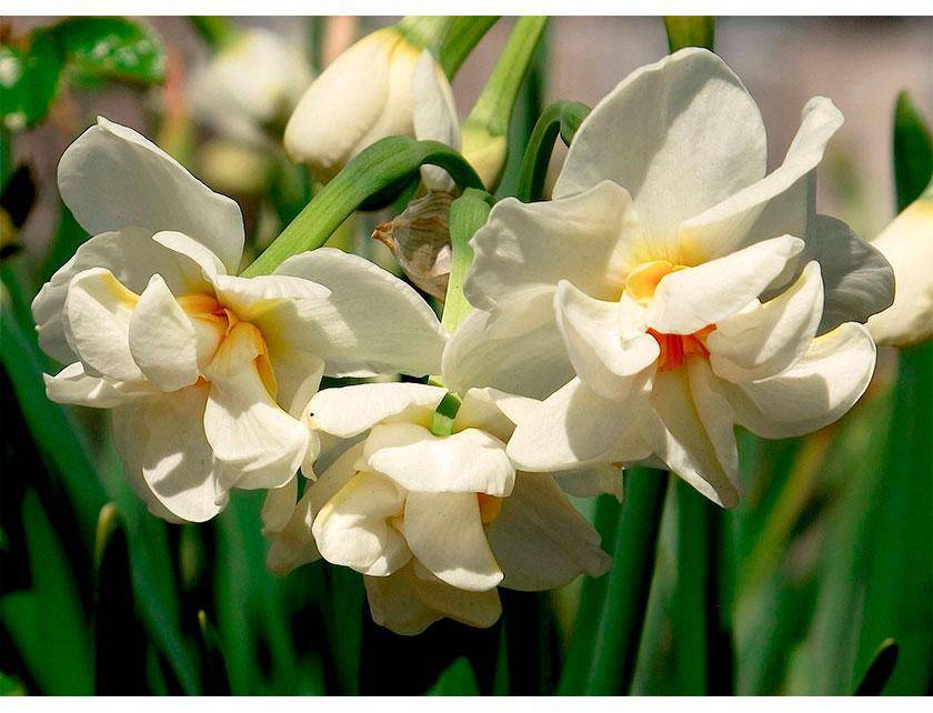 - нарцисс Йеллоу Чирфулнесс (narcissus Yellow Cheerfulness) цветет чистым желтым цветом, с одного места вырастает до пяти штук