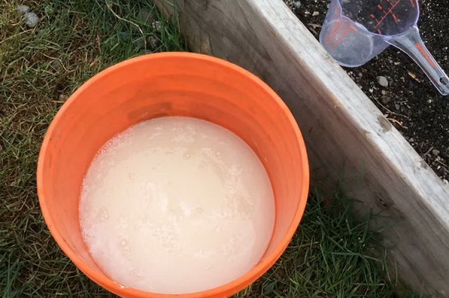 Для приготовления корневой подкормки сыворотку следует развести водой комнатной температуры в пропорции 1:10. Поливать полученной смесью культуру нужно под корень и при этом на расстоянии 0,5 метра от него. Если необходимо опрыскать кусты, то концентрация раствора должна быть больше, поэтому кисломолочный продукт следует развести водой. Соотношение компонентов должно оставлять 1:3. Чтобы готовое средство лучше прилипало к листьям, можно в него добавить мыло хозяйственное, заранее натертое на терке.
