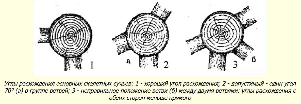 - При замене старых ветвей оставляются новые побеги от корня. Лучшими считаются ровные по форме и прямо растущие ветви, но не лежащие вертикально земле, корявые изогнутые или перекрещивающиеся.