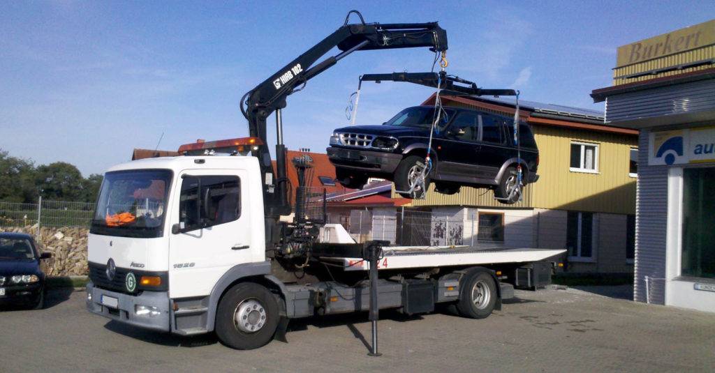 Для погрузки автомобиля на устройство прямого или ломаного типа используется кран-манипулятор с выдвижной стрелой, позволяющей перемещать грузы. Радиус перемещения для различных моделей техники может составлять от 5 до 10 метров. При этом данный способ транспортировки на платформе на сегодняшний день считается наиболее эффективным и надежным благодаря целому ряду неоспоримых преимуществ.