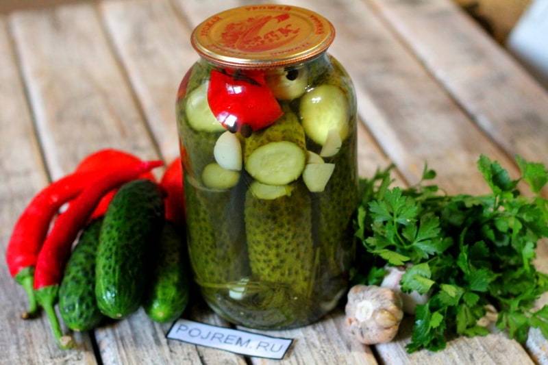 В рассол прямо по окончанию варки доливают водку в объеме 100 мл и насыпают в качестве консерванта 20 г лимонной кислоты. Говорить лишний раз, наверное, не стоит, что для подобных целей спиртной напиток нужно выбирать особо качественный, так как такие огурчики будут кушать и дети, и если что…