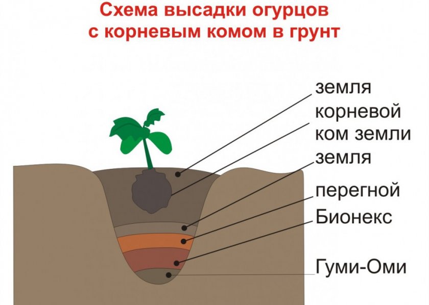 Перед этой операцией землю рыхлят, вносят в нее перегной или перепревший навоз (соотношение: 1 ведро удобрения на 1 м² грядки). Перед посадкой кустиков грунт поливают теплой водой.
