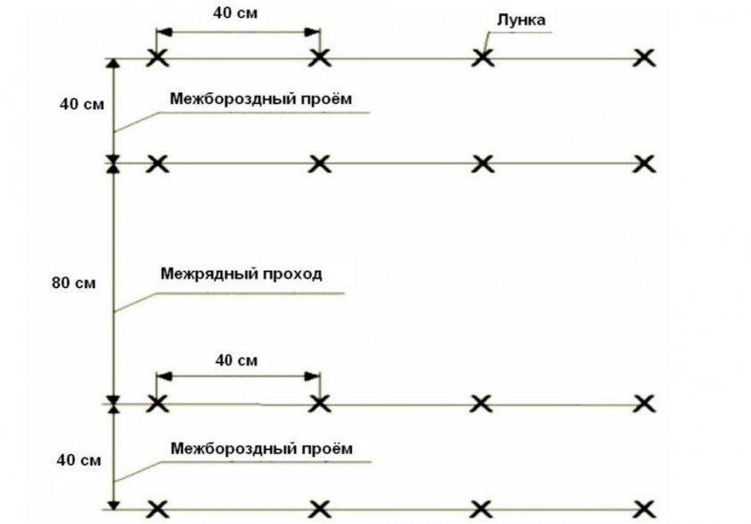 После того как излишняя влага впитается в почву, проводят высев семян. Делают посев так, чтобы семена в ряду расположились на расстоянии в 20 см друг от друга. Для этого в каждом рядке создают дополнительные углубления (около 10 см) в каждое из которых помещают не менее 2 семян. Это требуется для того, чтобы избежать низкой всхожести посевного материала.