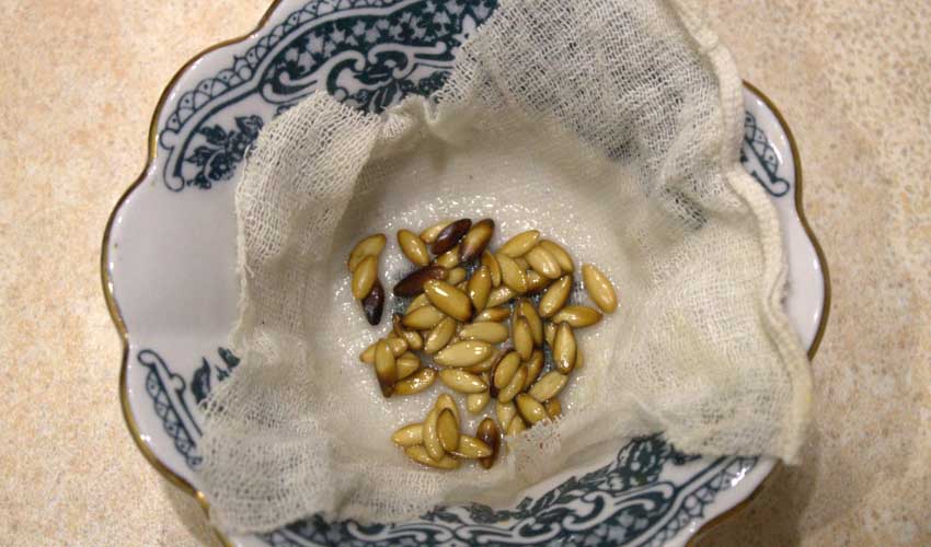 - Проращивание – заключительный этап, ускоряющий всхожесть посевного материала после посадки. Посадочный материал держат в увлажненной тряпочке до 3 суток при комнатной температуре. При этом ткань не должна пересыхать.