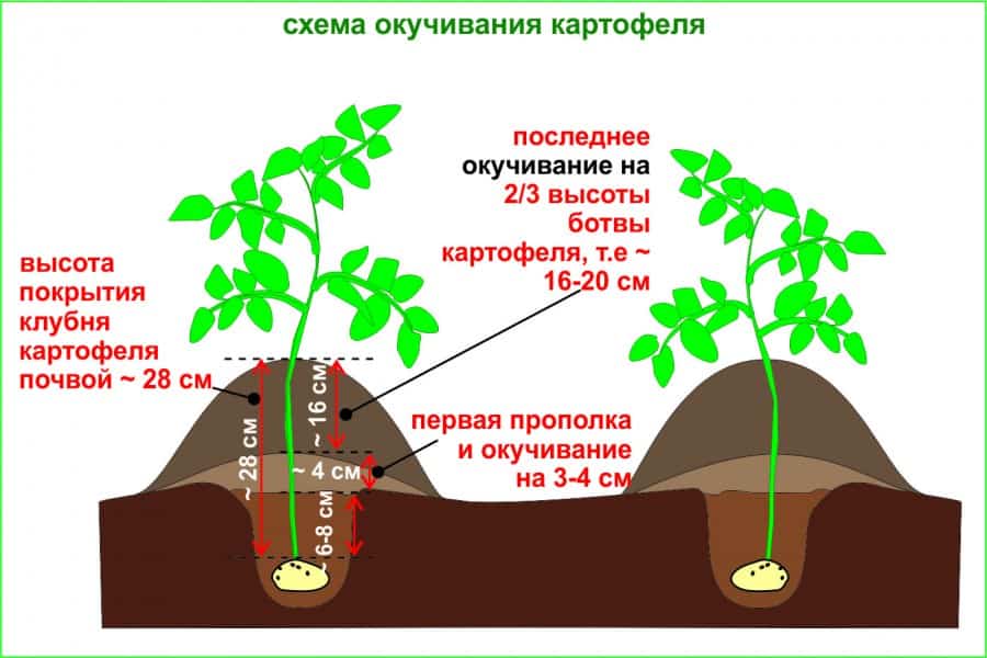 Целью окучивания является стимуляция образования и роста боковых вспомогательных корней, на них впоследствии и будут формироваться клубни, именно для этого рядок нужно сделать довольно объемным.