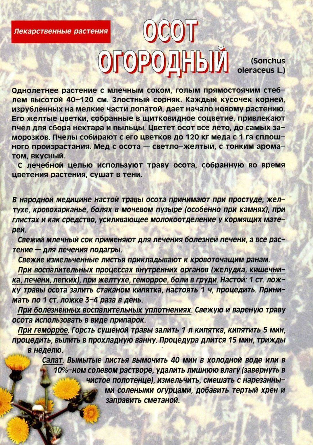 Применение осота в народной медицине