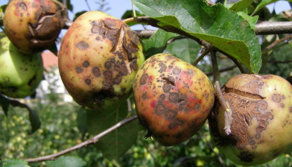 Через болячки и трещины яблоня становится уязвима для других грибковых и бактериальных заболеваний.