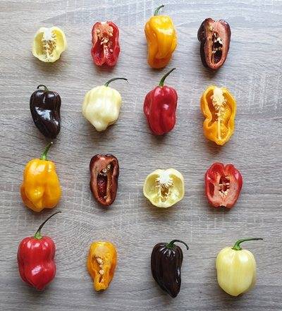 Окраска плодов может быть различной. Встречаются разновидности Хабанеро со следующим цветом перчиков: