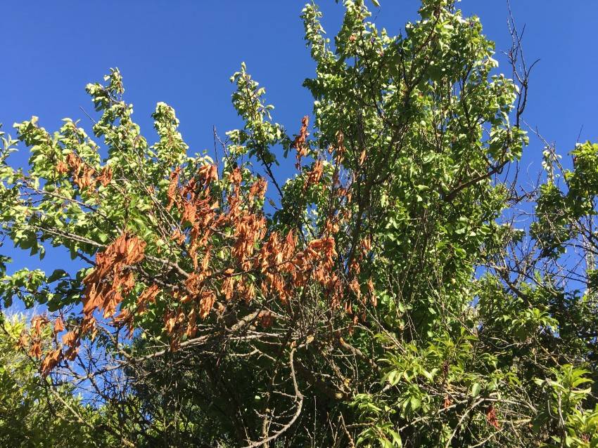 Абрикосы страдают от монилиального ожога, который стремительно распространяется, уничтожая цветы, листья, завязь. Болезнь возникает при заражении патогенными грибками.