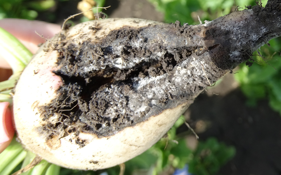 Наибольшую угрозу фомоз представляет для заложенных на хранение корнеплодов – внутри репки образуются черные уплотнения или пустоты. Первые потери появляются через пару месяцев, а к концу зимы все запасы пропадают.