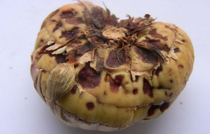 - При выкапывании донышко луковицы проламывается или же становится мягким.