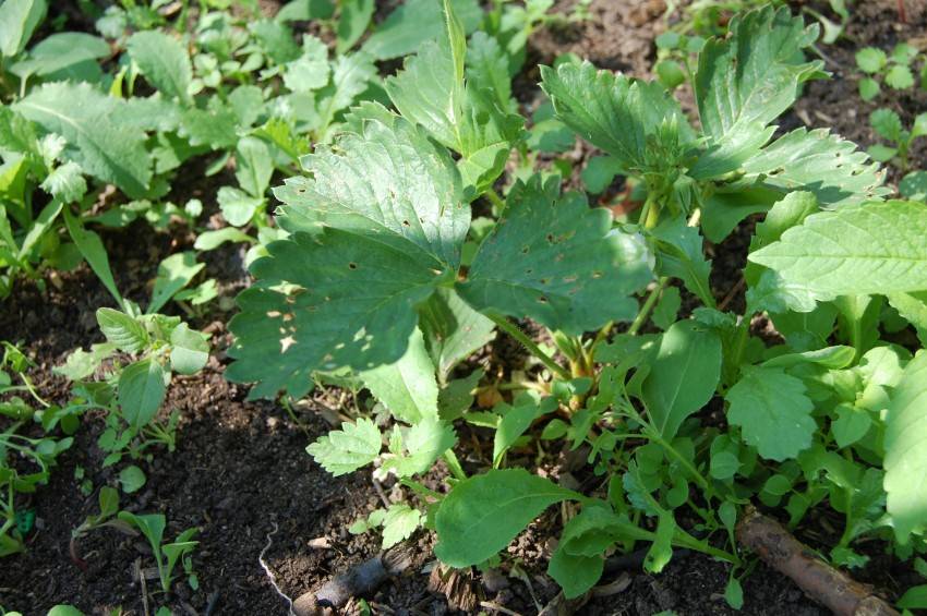 Редкая причина, но исключать ее не стоит, особенно если рассаду приобретают у неизвестных продавцов на стихийных рынках. Сорное растение никогда не цветет, но при этом оно агрессор, стремительно захватывающий территорию. Если исключены все перечисленные факторы, а клубника не цветет, но активно дает усы, надо брать лопату и выводить сорняк.