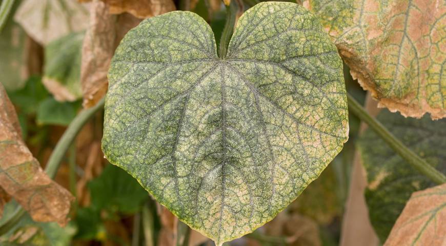 Белокрылка поражает огурцы в первую очередь в теплицах, но часть видов способна жить и в открытом грунте. На поврежденных листьях появляются нечеткие желтоватые пятна. Они постепенно увеличиваются. Возможно легкое скручивание листьев.