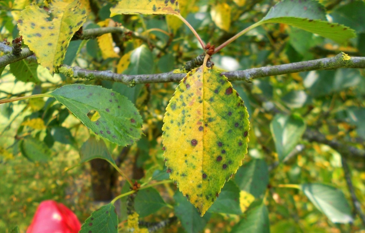 Это грибковое заболевание, которое впоследствии проявится черными точками на листьях, – спорами болезнетворного грибка. Спустя некоторое время листья у больного дерева засыхают и опадают.