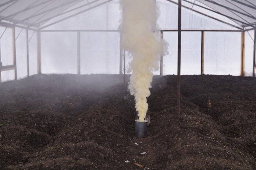 Перед тем как приступить к обработке внутри помещения, необходимо его убрать, вынести весь садовый инвентарь, ящики и пр. Наиболее простой вариант — использование дымовых шашек «Пешка-С».