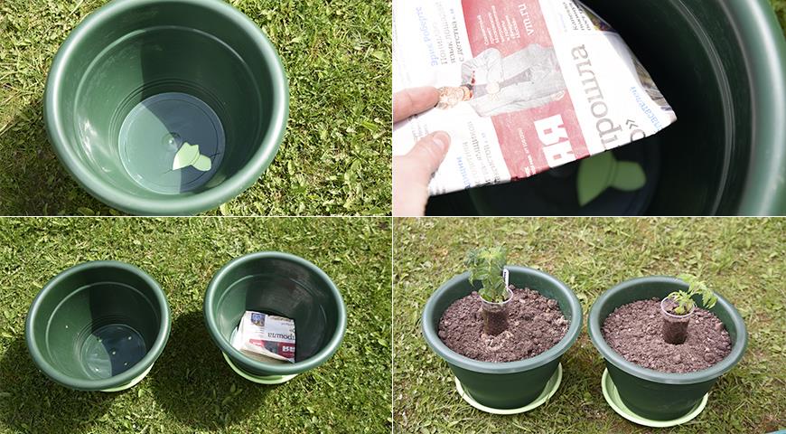 - Удобство полива.Не придется ориентироваться на полив вокруг корня или по стенкам тары. Достаточно налить воду в перевернутое донышко, и она будет по капле стекать в грунт.