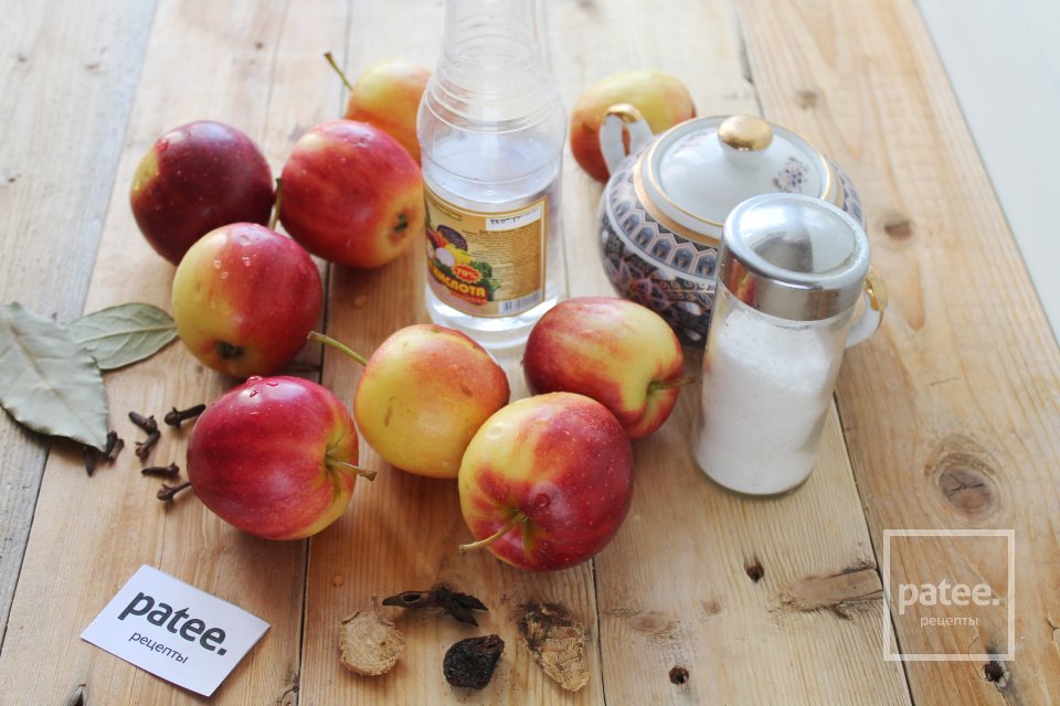Для приготовления яблок, маринованных на зиму, возьмите крепкие, лучше не крупные плоды, сахар, уксус, соль и пряности.