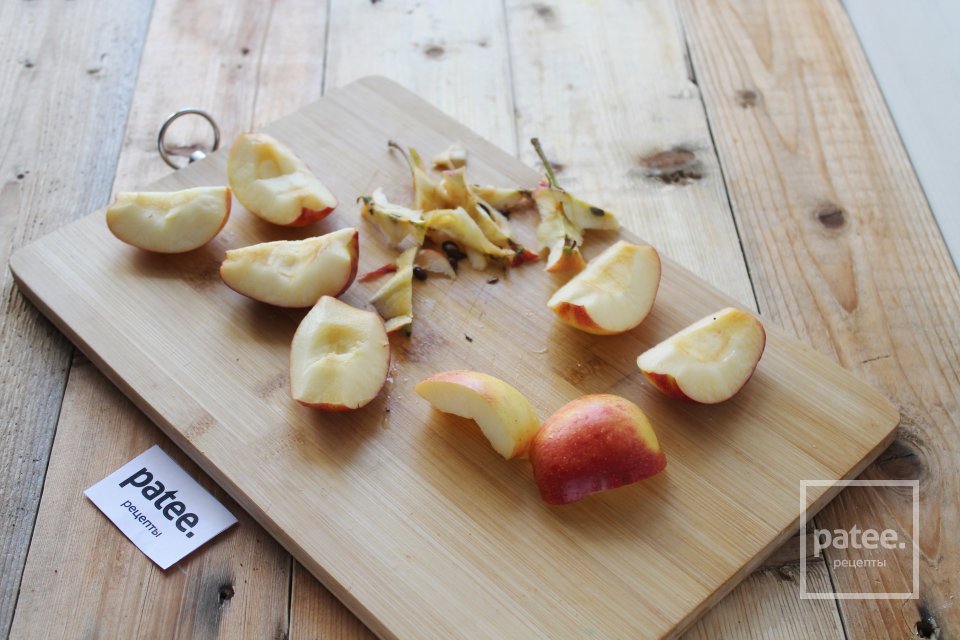 - Яблоки вымыть, нарезать на дольки, удалив при этом серединку.