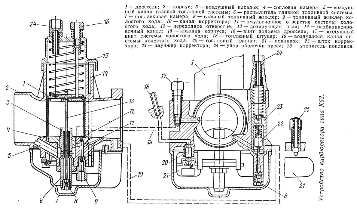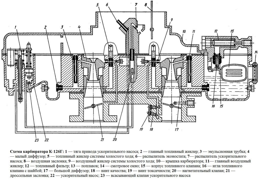 - воздушные и топливные клапана с вкрученными калиброванными жиклерами.