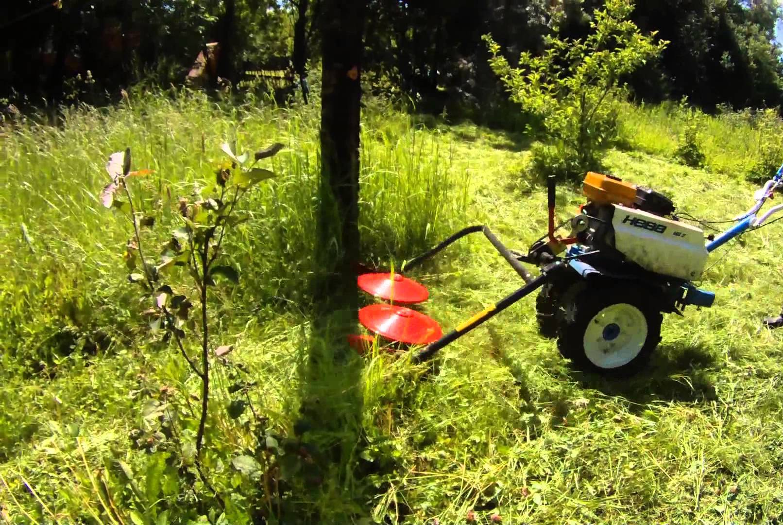 На видео выше продемонстрирован пример работы сегментной косилки к мотоблокам.