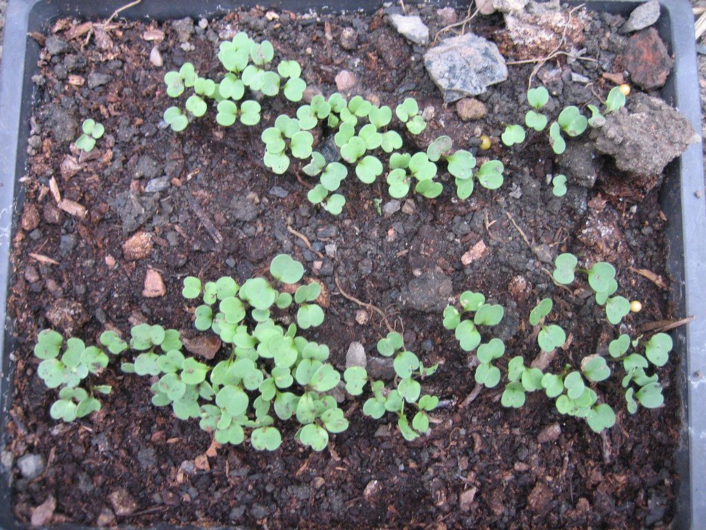 Глубина заделки — 1-1,5см. Ожидать всходов можно на 5-ый день. Всхожесть семян высокая, поэтому высевать их плотно не нужно, но ради экономии места многие сажают их часто, чтобы по мере роста выщипывать молодую зелень. Однако это плохо скажется на их росте. Среднее время сбора урожая — через месяц.