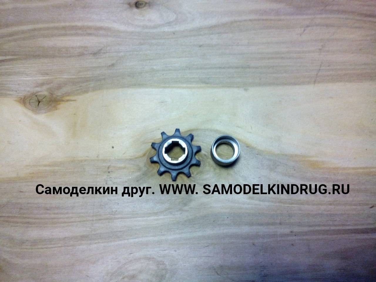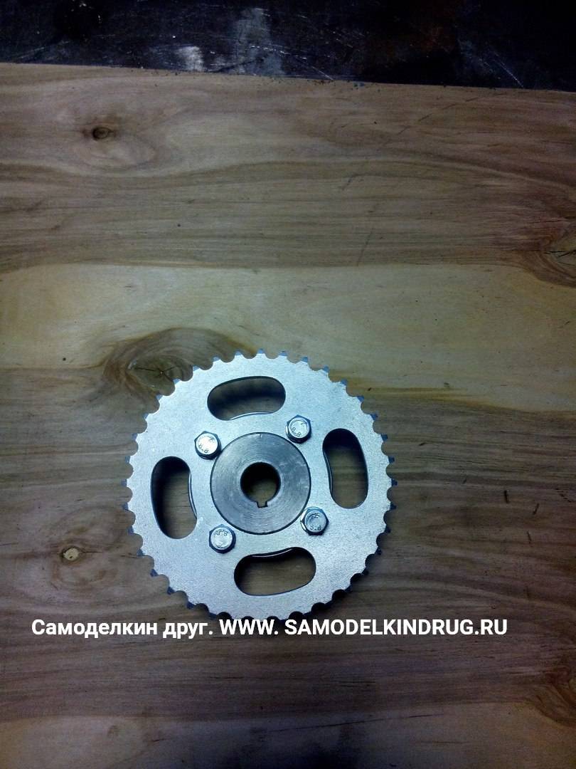 Затем нужно установить в центр вала дополнительную звезду, которая будет передавать на вал от мотора крутящий момент. Элементы будут соединены цепью, ее можно взять от старого мотоцикла. Такая звезда должна иметь 33 зуба с соблюдением шага 12,7, крепится она специальными болтами. Для того чтобы цепь и остальные части системы не подвергались негативным внешним воздействиям, рекомендуется предусмотреть корпус для конструкции.
