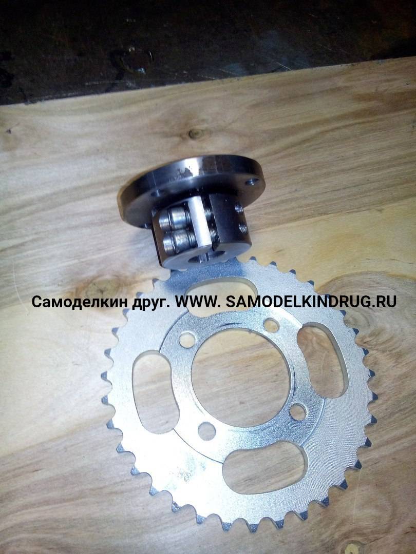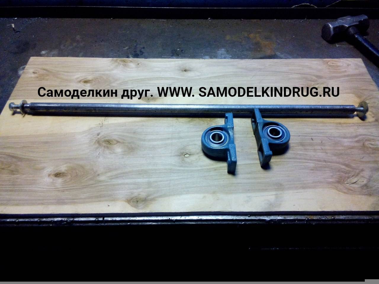 - Далее присоедините вал мостового редуктора – деталь можно взять от автомобиля УАЗ и отшлифовать ее до диаметра 3 см.;