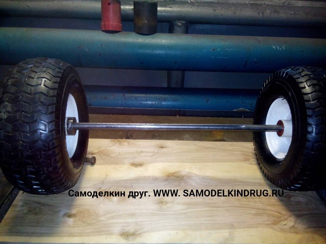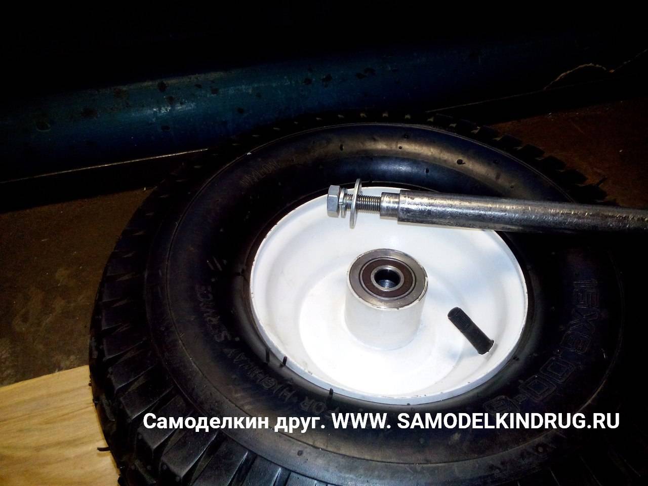 Колеса могут оснащаются встроенными подшипниками, в таком случае заменить или отремонтировать их намного проще и быстрее. Ось и колеса крепятся с помощью болтов М10.