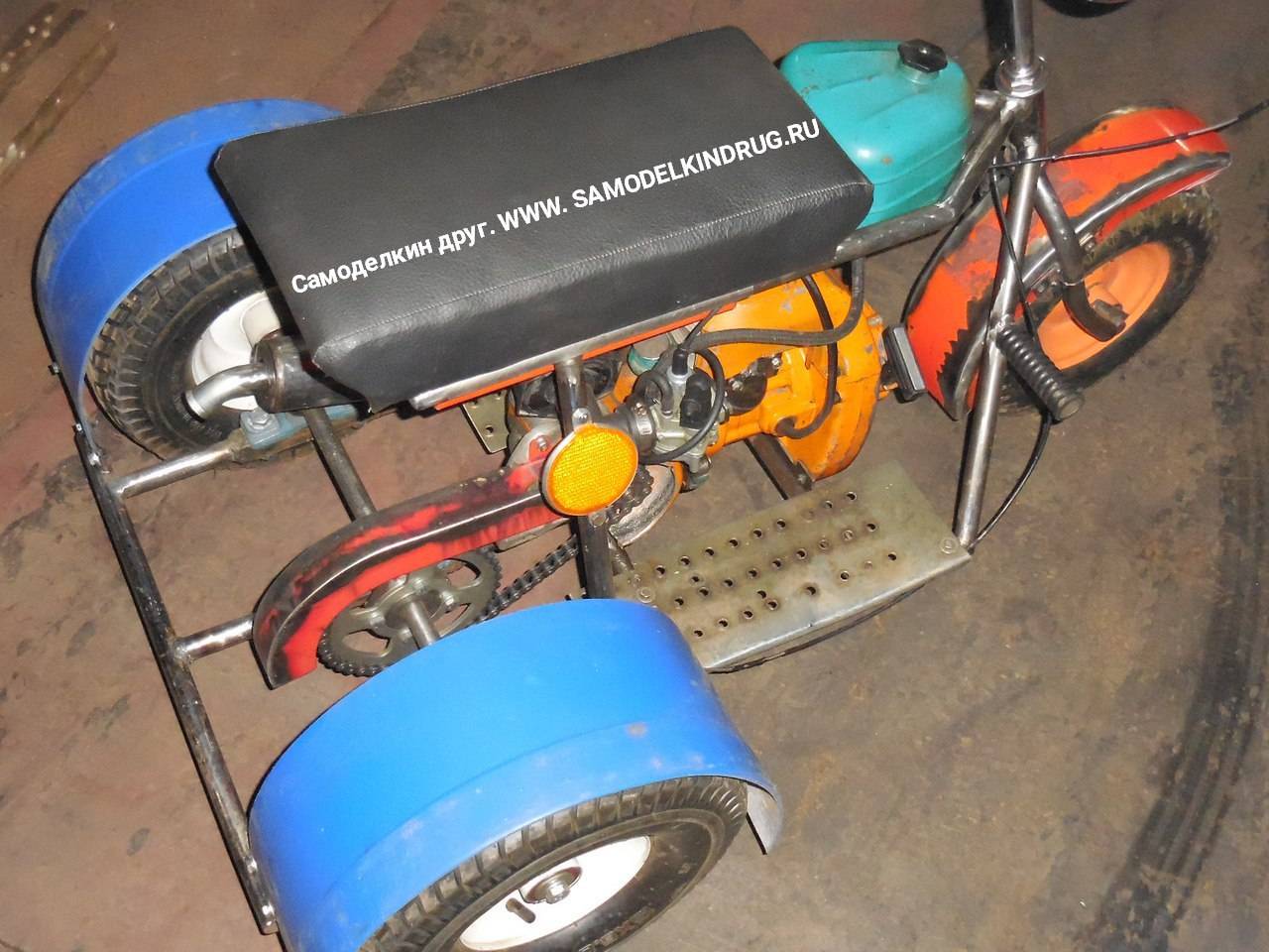 Пошаговый процесс сборки байка мопеда трехколесника с двигателем от бензопилы «Урал» своими руками.