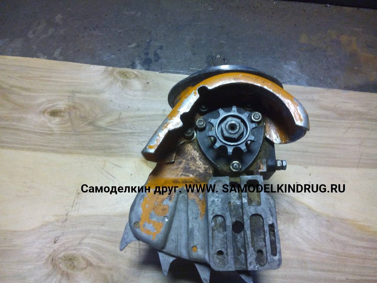- Для увеличения дистанции между мостом редуктора и землей, задействуйте двурядную цепь и две «ВАЗовские» звездочки – они увеличат клиренс культиватора до 150 мм.;