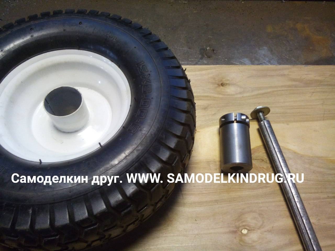 - Чтобы установить фрезы и колеса следует использовать стальную трубу, длиной 32 см.
