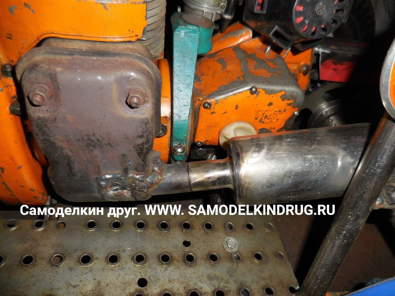 Помимо прокладки, также многие устанавливают глушитель на двигатель. Здесь требуется заполнить полость цельной металлической трубы с помощью резиновых прокладок. А затем закрепить конструкцию глушителя на мотор, используя болтовое соединение или сварочный аппарат. Так уровень шума снегоуборщика заметно снизится.