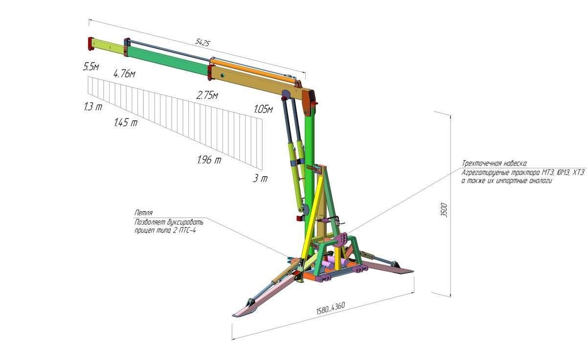Если стрела имеет длину более двух метров, велика вероятность того, что трактор может опрокинуться. Для устранения возможной проблемы передняя часть спецтехники оборудуется противовесом.
