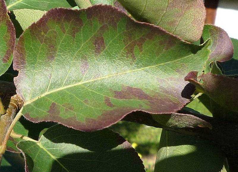 Скручивание листьев груши чаще всего вызывают следующие заболевания: