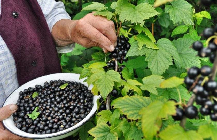 Уборку чёрной смородины в домашних условиях осуществляют вручную. Надо одной рукой аккуратно приподнимать ветку, а другой срывать ягоды вместе с плодоножкой, желательно целыми кистями.