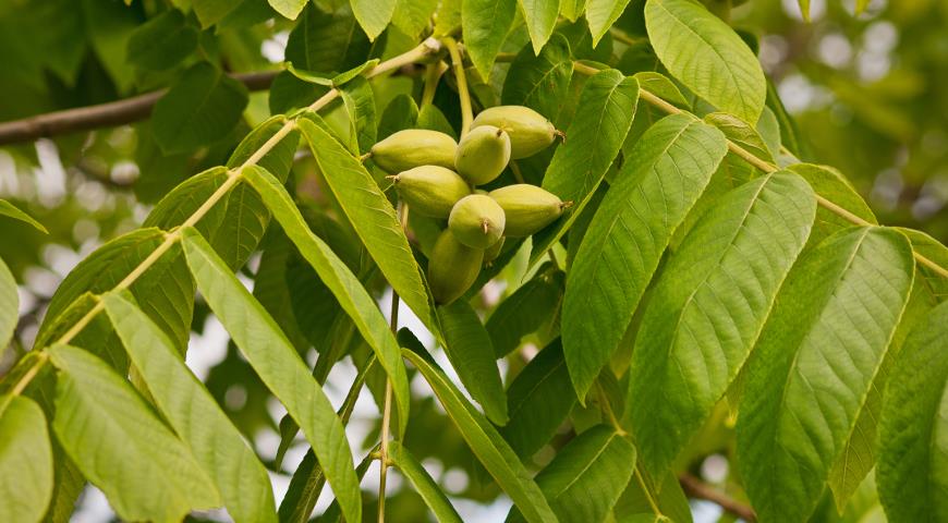 Первые плоды появляются на 8–10-й год. В средней полосе они завязываются, но могут не вызреть. Полноценный урожай орех дает в годы с продолжительным теплым летом – плоды созревают в сентябре-октябре. Но даже если и не будет орехов, посадить его стоит.