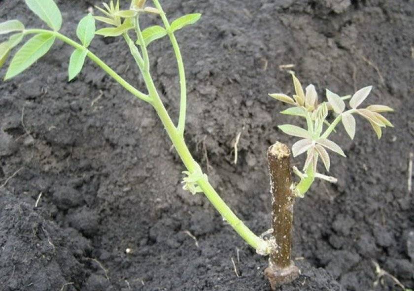 Вырастить грецкий орех можно и из корневой поросли. Ее характеристики идентичны садовым саженцам, то есть плодоносить такие деревца начнут раньше – на 3-й или 4-й год после посадки. Единственный недостаток – плоды будут такими, какие должны быть у корневой части. Это означает, что у привитых экземпляров корневая поросль даст не такие орехи, как родительская макушка.